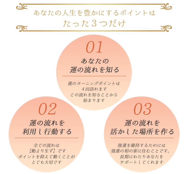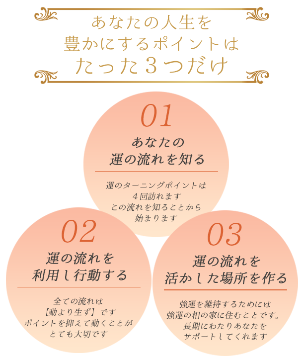 運勢を知る事の大切さや、方位の影響について過去の自分と照らし合わせた時、納得のいく事ばかりで驚きました。